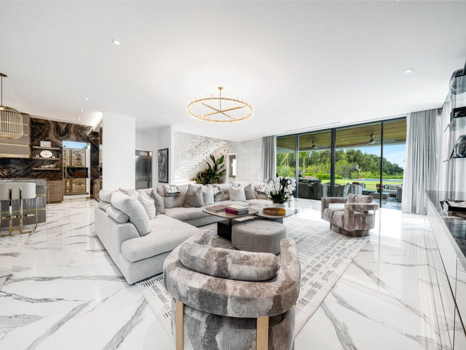The open-concept interior features high-end finishes, a spacious living and dining area, and a state-of-the-art kitchen with custom cabinetry and a large island—perfect for entertaining.